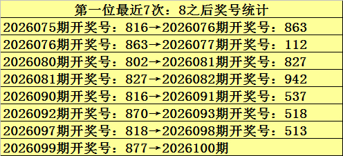 第一位冷码判断:上期奖号为8,遗漏值为1期,目前该位最冷号码为7,遗漏值为31期,本期不会解冻。